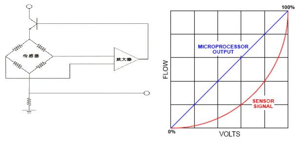 對加熱探頭的(de)總能量供應正比(bi)于氣體質量流量(liàng),微處理器輸出線(xian)性信号。