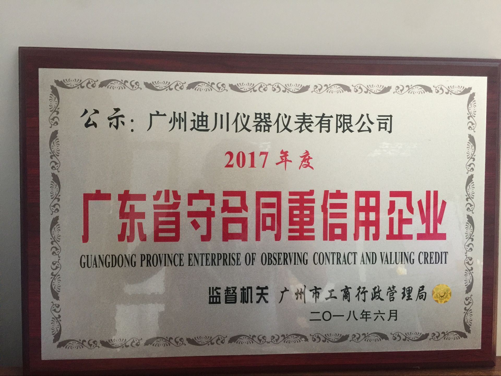 熱烈(liè)祝賀公司榮(róng)獲2017年度廣東(dōng)省守合同重(zhòng)信企業