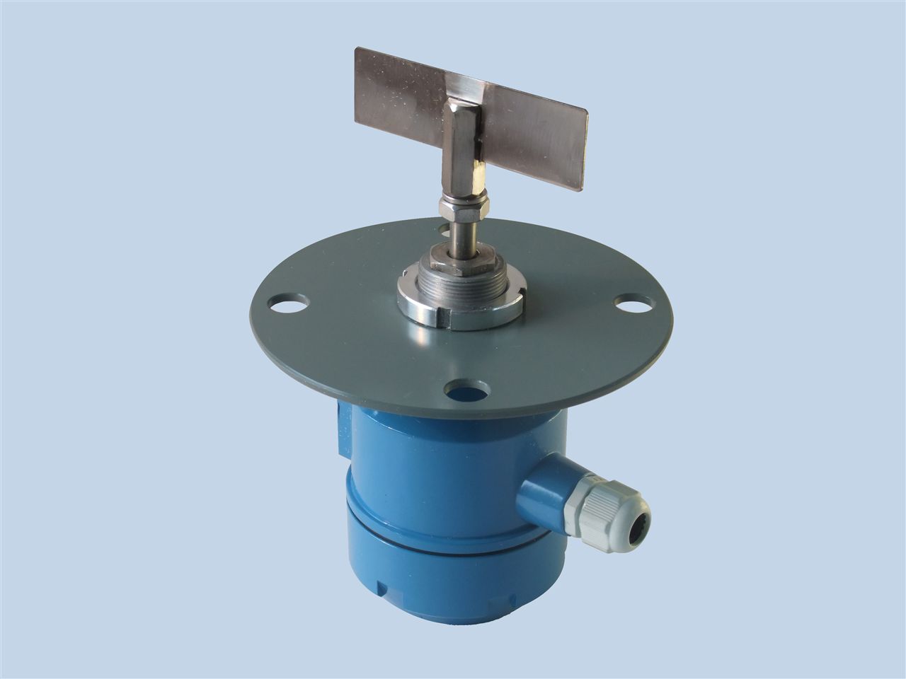 利(li)用永磁(ci)電機帶(dài)動葉片(pian)旋轉,當(dang)被檢測(cè)物料上(shang)升至⁉️葉(yè)片👌位置(zhì)🔞時,葉片(pian)轉動受(shòu)阻,該阻(zu)力通過(guo)傳動軸(zhou)㊙️傳遞到(dào)接線盒(he)☔内的檢(jian)測裝置(zhi),檢測裝(zhuang)置則向(xiang)外輸出(chū)一個開(kāi)關信号(hao),并切斷(duàn)電機電(diàn)源使葉(yè)片停止(zhi)轉動。