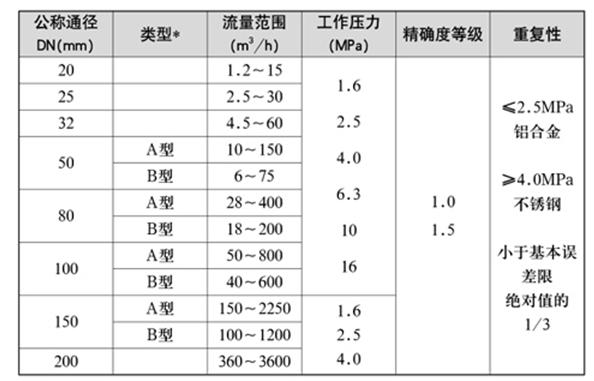 1、流量計規(guī)格、基本參數(shu)和性能指标(biāo)(見表1)