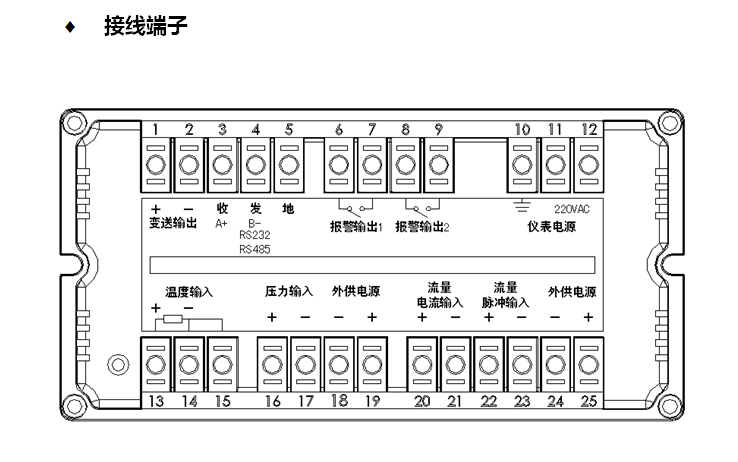 XSR流量補償積(ji)算記錄儀流(liu)量積算儀 外形尺寸(cùn)及接線端子(zi)