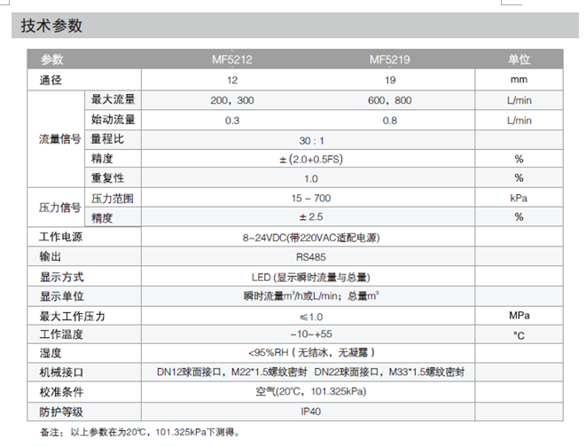 MF5219氣體質量(liang)流量計技術參(cān)數: