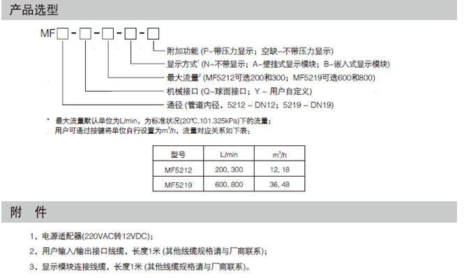 MF5212氣體質量流(liú)量計産品選型(xíng): MF5212-200氣體質量(liang)流量計